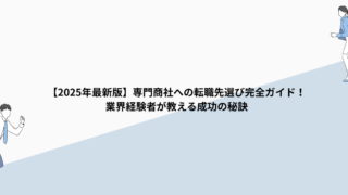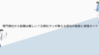 商社へ転職 専門商社営業への転職完全ガイド|未経験から始める成功のロードマップ【2025年最新版】 専門商社営業転職を成功させるための完全ガイド。未経験から専門商社営業転職を目指す方向けに、求められるスキル、年収相場、面接対策まで詳しく解説します。 2025.09.12 商社へ転職