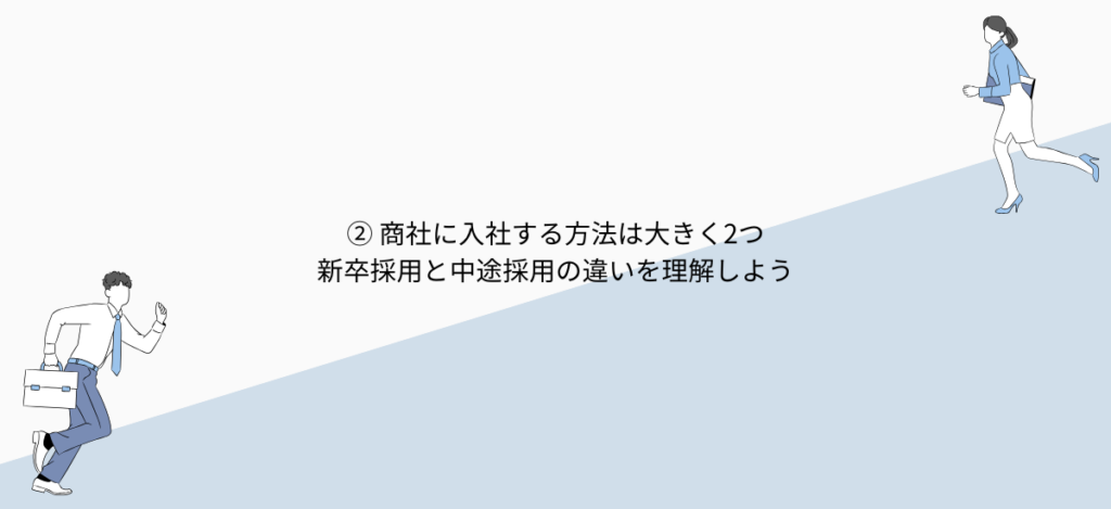 ② 商社に入社する方法は大きく2つ|新卒採用と中途採用の違いを理解しよう