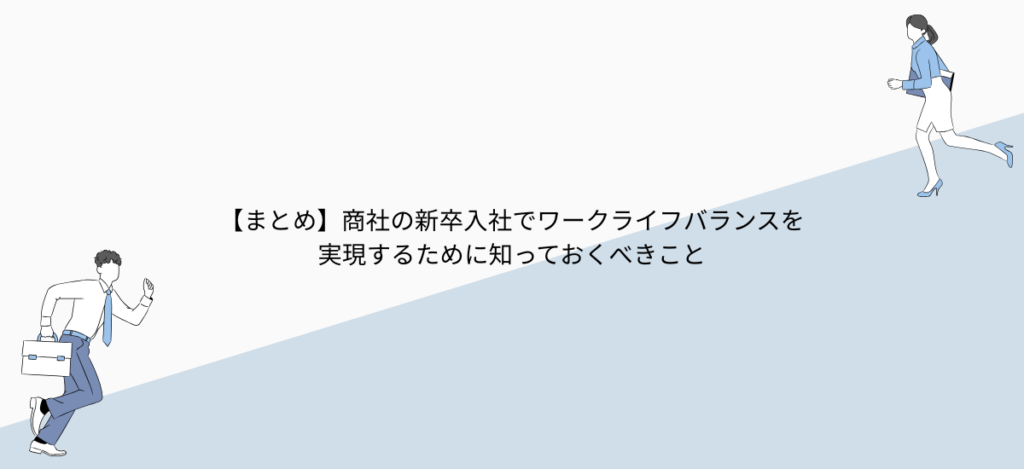 ここまで、商社の新卒入社におけるワークライフバランスについて、様々な角度から解説してきました。