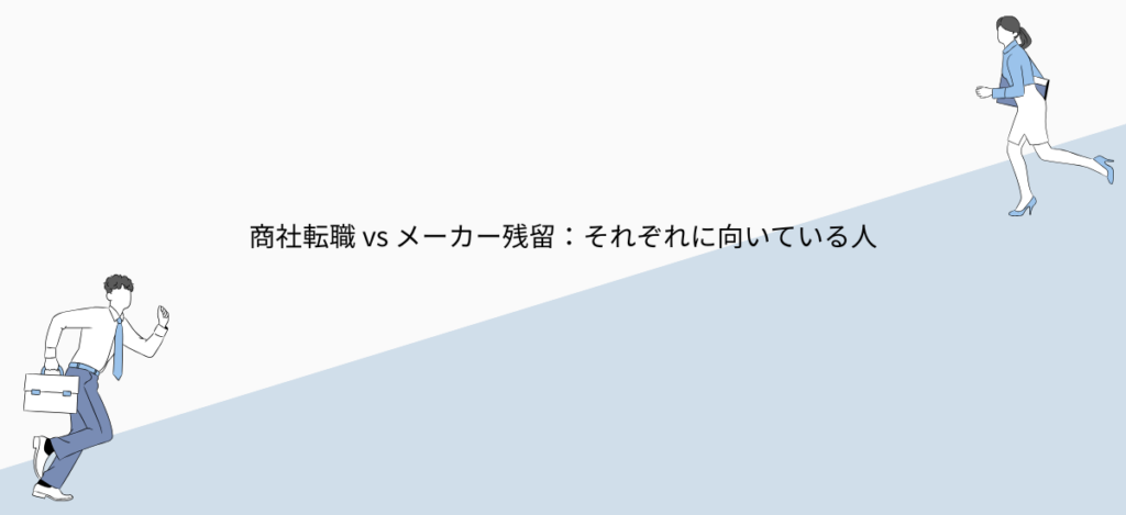**「商社転職 vs メーカー残留」という選択は、あなたのキャリア人生を大きく左右する重要な分岐点です。**