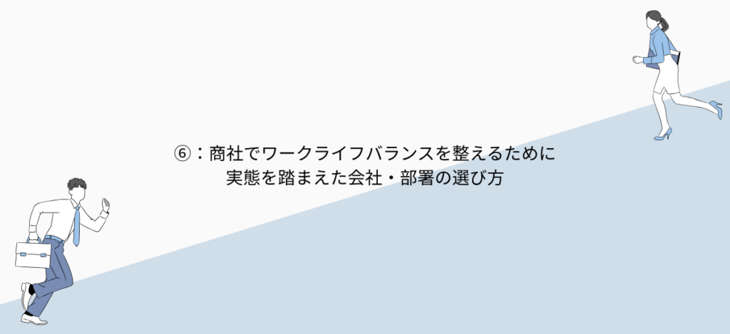 ⑥:商社でワークライフバランスを整えるために実態を踏まえた会社・部署の選び方