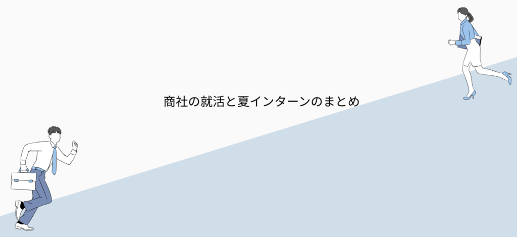 ここまで、商社の就活における夏インターンの重要性、選考対策、参加のメリット、そして不参加でも成功する方法について詳しく解説してきました。